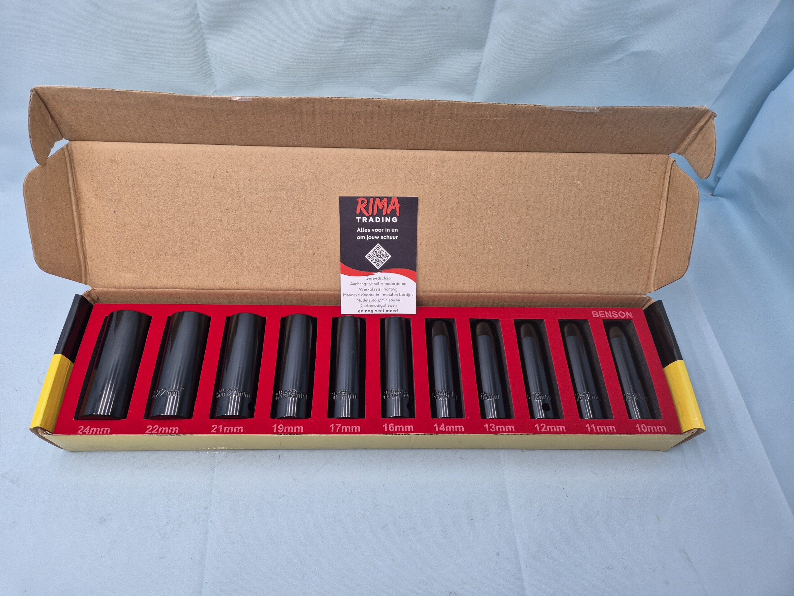 Complete 11-delige slagmoerdoppenset.